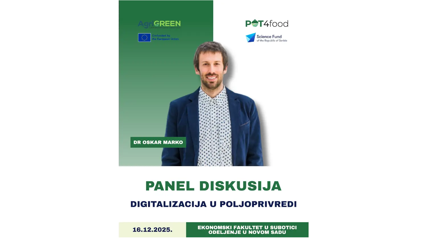 The project teams of POT4food and AgriGREEN are organizing a panel discussion on Tuesday, December 16, at the Novi Sad Department of the Faculty of Economics in Subotica. Under the theme “Digitalization in Agriculture,” the project teams will engage in a discussion with Dr Oskar Marko, starting at 11:30 AM in room S4. Dr Oskar Marko is a Senior Research Associate at the BioSens Institute, whose research focuses on […]